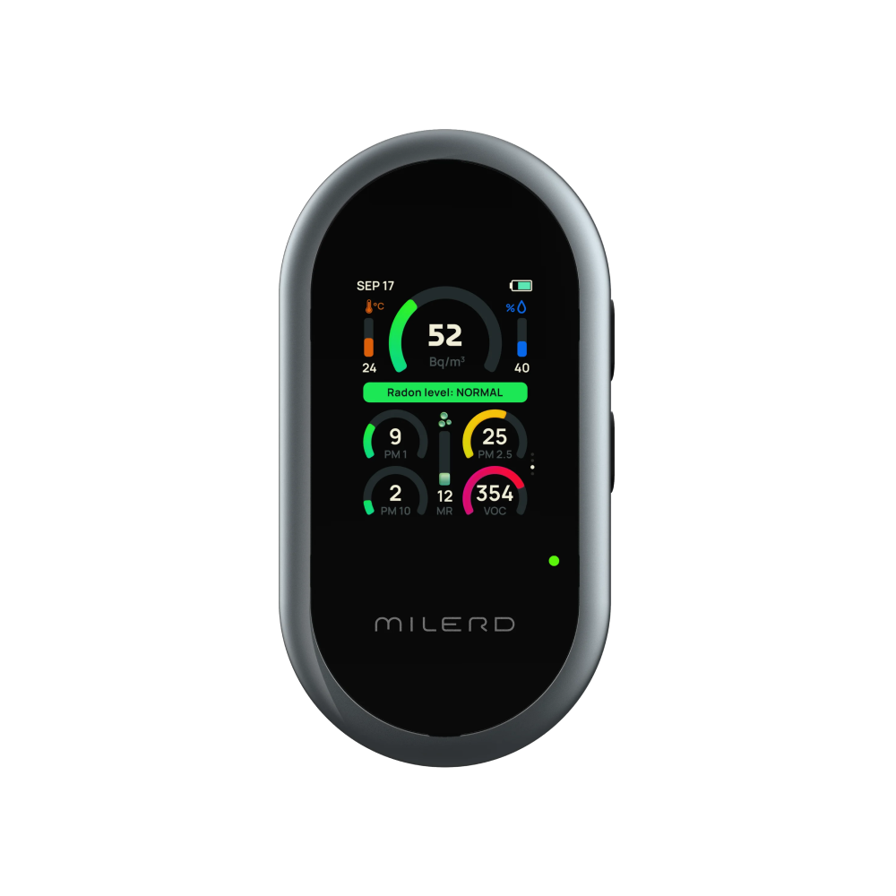 جهاز ميلرد أيرو كيو 8 هو محلل متعدد الوظائف لغاز الرادون وتلوث الهواء. فهو يقيس مستويات غاز الرادون، والرطوبة، ودرجة الحرارة، ومخاطر العفن على فترات قصيرة وطويلة. بالإضافة إلى ذلك، يكتشف الجسيمات الضارة والمركبات العضوية المتطايرة، مما يوفر نظرة عامة شاملة على جودة الهواء الداخلي