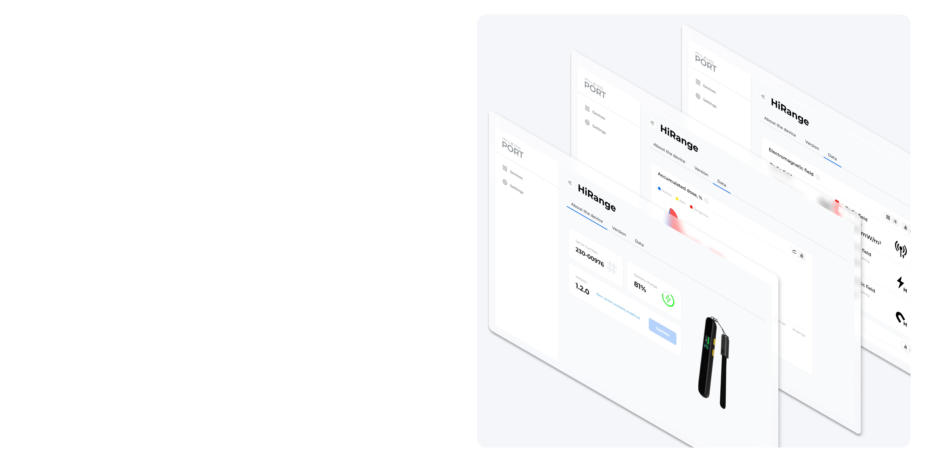 جهاز ميلرد هيرانج هو كاشف مدمج وذكي للموجات الراديوية والكهرومغناطيسية، وهو مناسب للاستخدام المهني والمنزلي على حد سواء. على عكس أجهزة الكشف عن الموجات الكهرومغناطيسية القياسية، يمكنه قياس المجالات الكهربائية والمغناطيسية منخفضة وعالية التردد، بما في ذلك شبكات الجيل الخامس (5G EMF meter)، مع نطاق قياس يصل إلى 8 جيجاهرتز. يساعد هذا الجهاز المتقدم المستخدمين على مراقبة تعرضهم للإشعاع الكهرومغناطيسي وإدارته بفعالية.