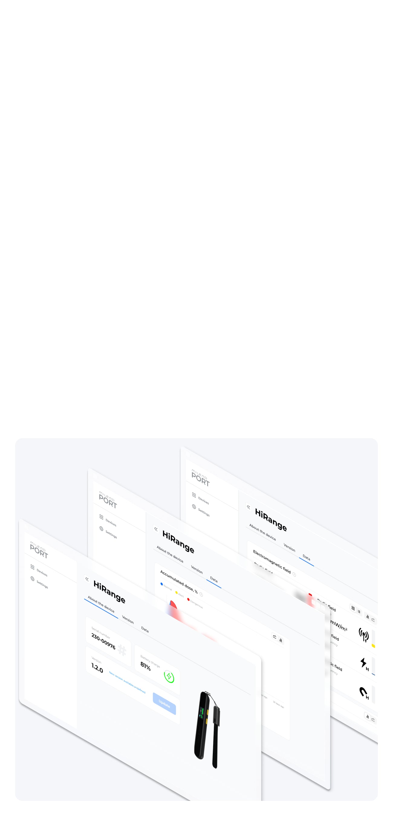 يمكن لجهاز ميلرد هايرانج تخزين 30 يومًا من سجل القياس، مما يوفر نظرة عامة شاملة عن تعرضك للإشعاع الكهرومغناطيسي. وهذا يساعدك على تتبع التغيرات بمرور الوقت، وفهم المخاطر المحتملة، وتحديد المناطق التي يكون فيها التعرض للإشعاع الكهرومغناطيسي أعلى، سواء في المنزل أو العمل أو في أي مكان آخر. وبالاستعانة بهذه البيانات، يمكنك اتخاذ إجراءات مستهدفة لتقليل التعرض في المناطق عالية الخطورة وتعزيز سلامة بيئتك.
